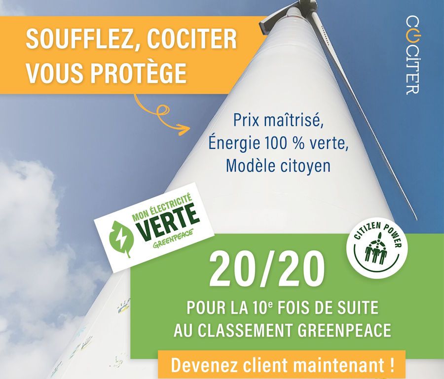 Comme vous le savez, notre coopérative Emissions Zéro participe au circuit court de l’énergie avec notre fournisseur Cociter. Notre promesse commune : vous garantir un accès à une énergie renouvelable, locale et citoyenne à un prix maîtrisé.